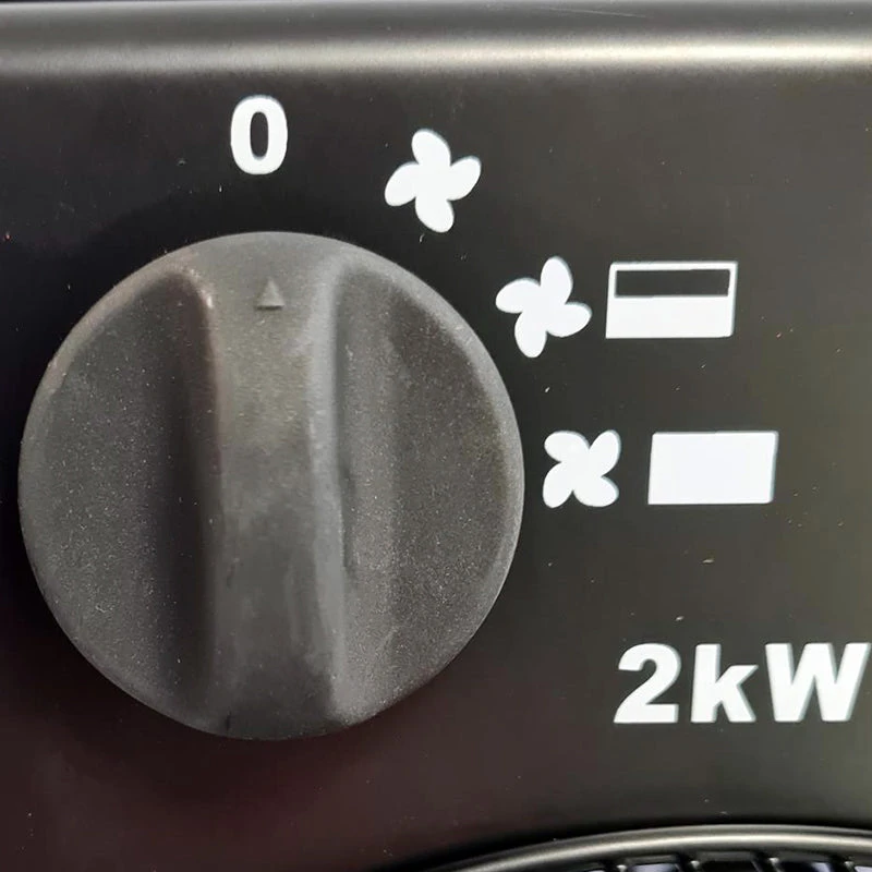 fan plus 1kW power – ideal for smaller spaces, the fan cuts in and out when the heating element turns on and off.