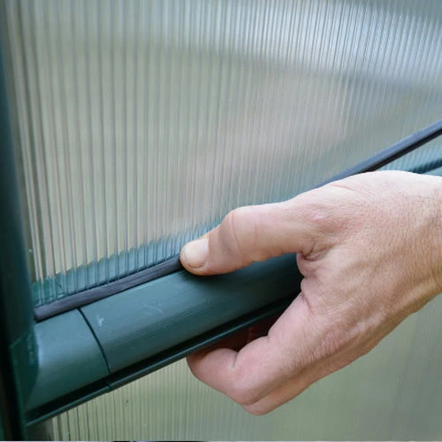 Glazing – high quality tough, twin wall polycarbonate safety glazing held securely within the sturdy framework, this semi-clear polycarbonate glazing has a great heat retentive property effectively making your greenhouse double glazed.