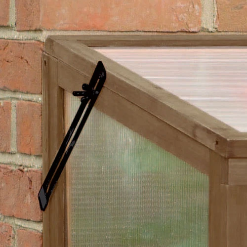 Glazed both sides, top and back with twin-walled polycarbonate – this provides maximum insulation, whilst providing a filter against scorching sun. The front rail of the lid section has a series of drainage holes to prevent water from accumulating against the timber during long periods of wet weather.