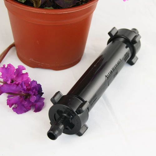 WIth a ˝” barbed fittings at either end of the filter allowing you to securely push ˝” hose/ tubing.