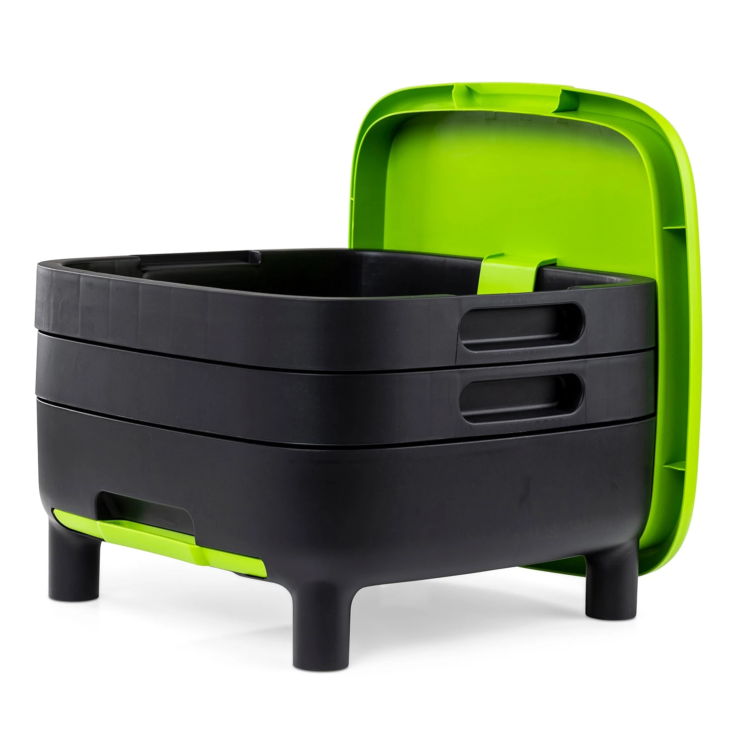 Two Rotatable Working Trays – these make up the main body of the wormery and form the place where the worms live and you add organic waste for them to feed on. When you first start using the wormery you use one tray until it’s full and then add the second tray. Once you have the wormery up and running, as the second tray fills to capacity, the first tray will be full of worm casting ready to be used in your garden to enrich your soil.