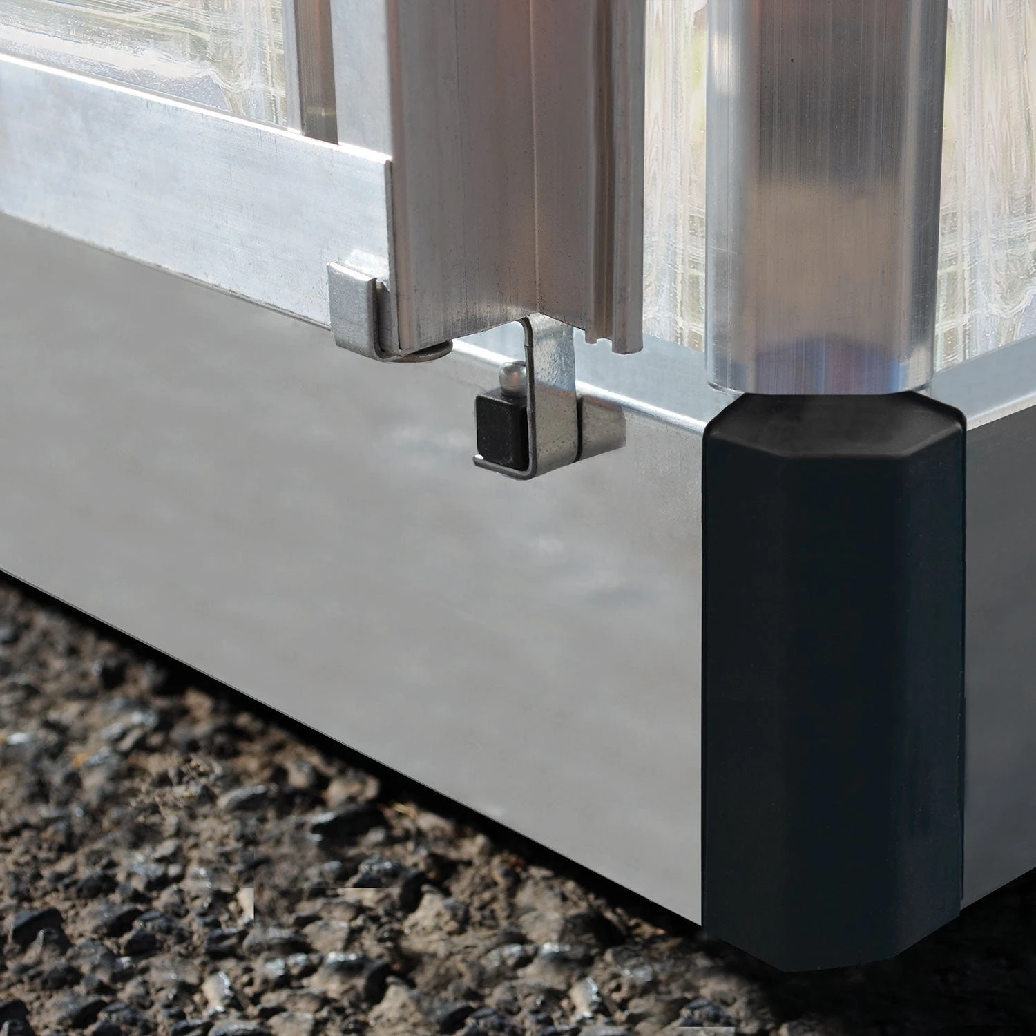 Galvanised Steel Base – this factory-made base will add structural stability to the greenhouse. This base can be anchored to a solid surface (such as concrete) using the pre-drilled holes in the base or it can be fitted to bare earth (fixings not included).