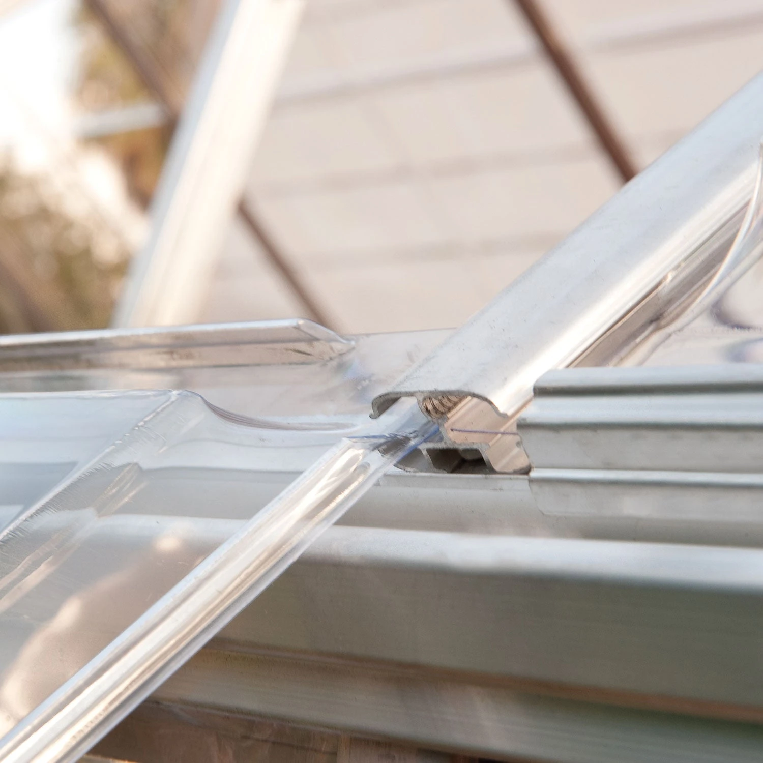 Built-in Gutter System – running down the length of the greenhouse, at the eaves, with gutter heads included to allow you to collect rainwater if required.