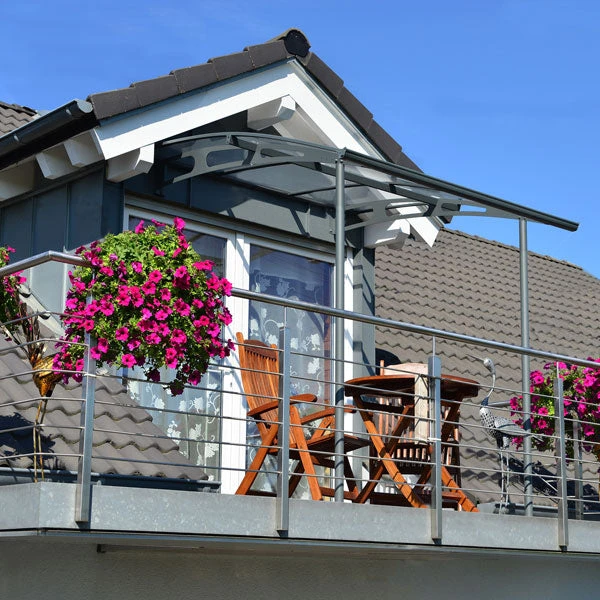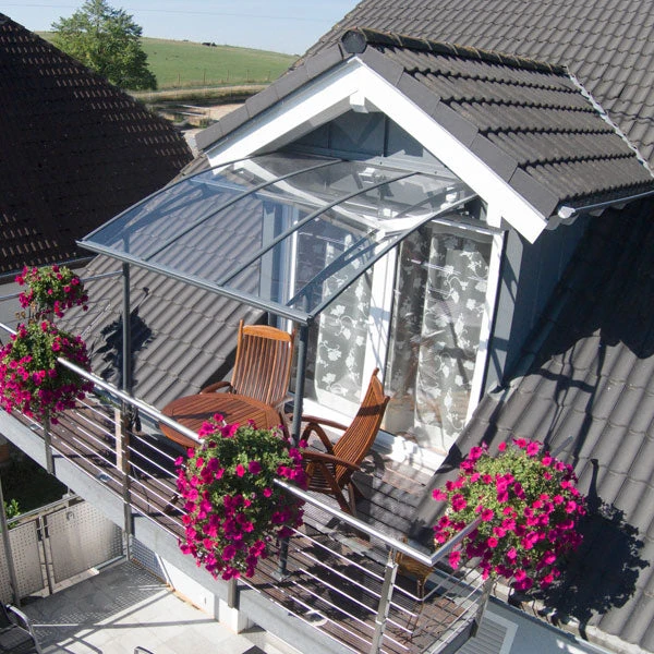 This door canopy is delivered flat packed for self-assembly. It comes complete with a wall anchoring kit suitable for attaching the canopy to a concrete or solid brick wall. Back hidden rubber gasket seals the canopy to the wall surface to help prevent water seepage. Anchoring this canopy to the ground is essential to its stability and rigidity. It is required to complete this ground anchoring in order for your warranty to be valid.