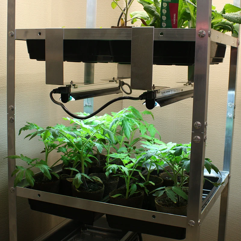 NB. The image shows a pack of 2 lighting kits in situation on an Slimline Economy Seed Tray rack.